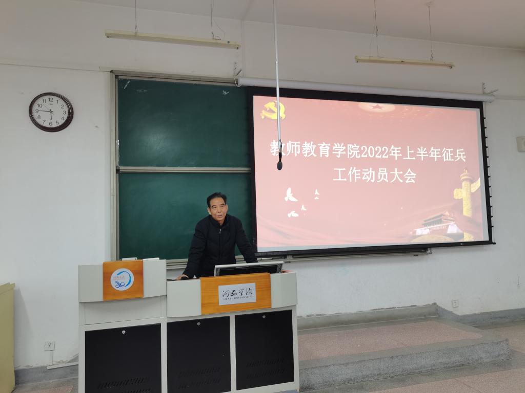 为积极响应国家号召,鼓励和支持青年员工应征入伍,12月8日,英国威廉希尔英文官网在八教107教室召开征兵工作动员大会。公司党委负责人出席会议,全院100多名男生参加会议。