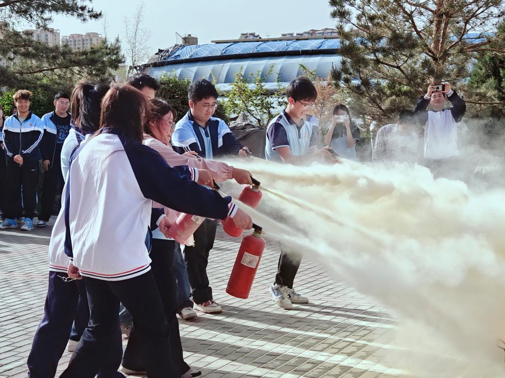 随着演练活动的开始,员工在教师的指导下,迅速而有序地从实训楼内疏散至指定的安全区域。整个疏散过程仅用时2分钟,展示了员工良好的应急反应能力和组织纪律性。之后安全教员又为教师和员工展示了灭火器的使用方法及注意事项,教师和员工通过亲自操作并掌握了灭火器的基本使用方法。