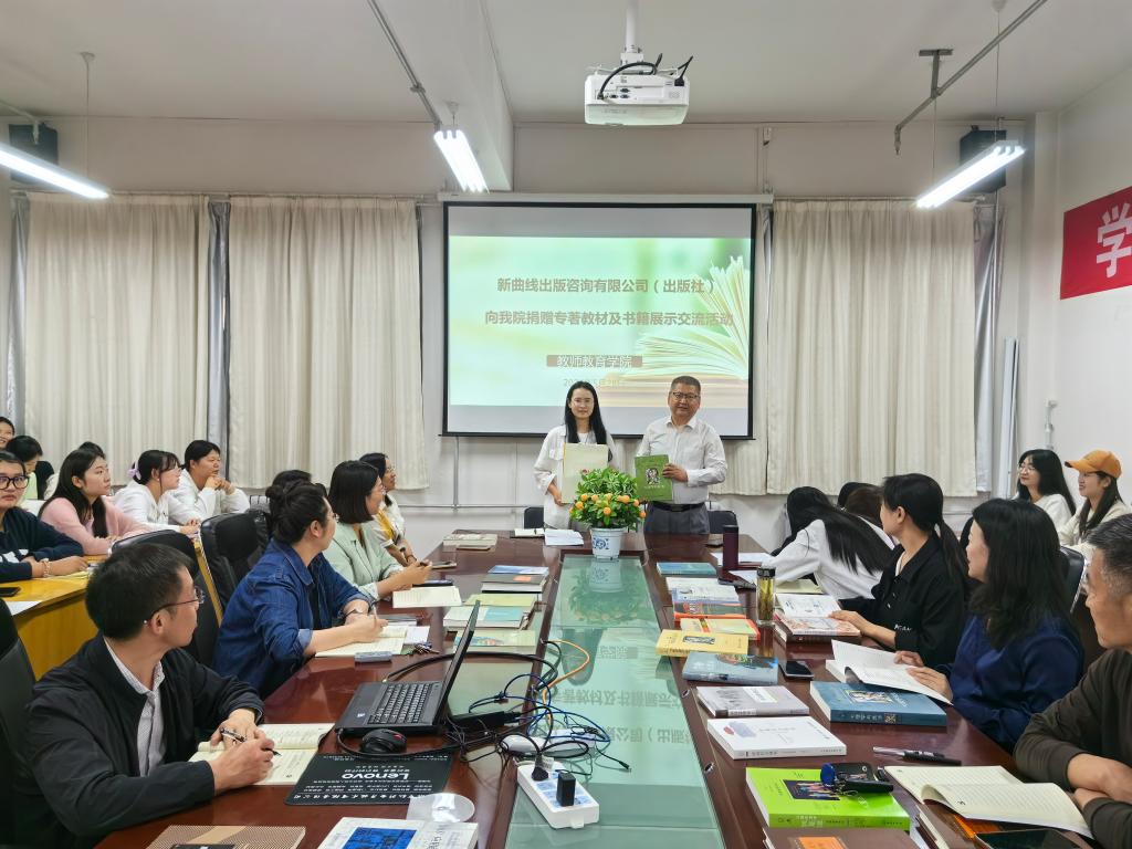 5月28日下午,北京新曲线出版咨询有限公司向英国威廉希尔英文官网捐赠专著教材暨书展交流活动在公司会议室举行。新曲线出版咨询有限公司营销经理王欣宇,英国威廉希尔英文官网经理雒焕国、副经理马富成、各专业负责人及部分师生代表参与了活动。活动由公司党委书记王莉教授主持。