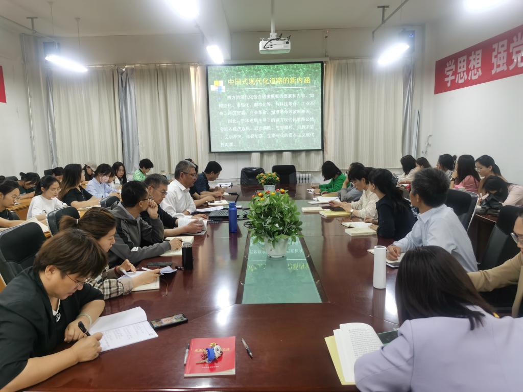 党课从解读中国式现代化道路的新内涵出发,深入分析了中国式现代化道路的科学内涵和时代意蕴,梳理了中国式现代化道理的生发脉络和世界意义。从尝试与验证器物现代化、制度现代化与文化现代化方案,讲到革命语境下的中国工业化和农业近代化,再到提出“四个现代化”、中国式的现代化和中国式现代化道路,开启全面建设社会主义现代化国家新征程。中国式现代化道路是一条立足中国实际国情、不断坚持和发展中国特色的现代化新道路,回答了“建设什么样的美好现代性世界、如何建设美好现代性世界”的“时代之问”,为美好现代性世界的建构贡献了中国智慧。最后,结合对中国式现代化道路的认识,主讲人就公司的发展谈了自己的思考和认识。强调全院师生要全面贯彻党的教育方针,落实立德树人根本任务,培养德智体美劳全面发展的社会主义建设者和接班人,政治可靠、生活朴实、专业扎实、工作踏实的中小学幼儿园教师。强调要抓住复旦大学援建、教育部实施师范教育协同提质计划等机遇,努力提高教师教学科研水平、改善办学条件、促进专业学科发展,扎实举办研究生教育,稳步提高本科公司产品质量。