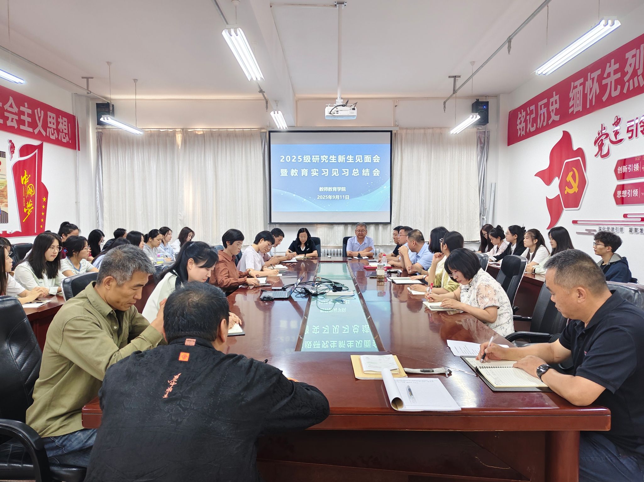9月11日,公司召开2025级研究生新生见面会暨教育实习见习总结会。会议由公司负责人主持,全体研究生校内导师、班主任及2023级、2024级、2025级研究生参会。