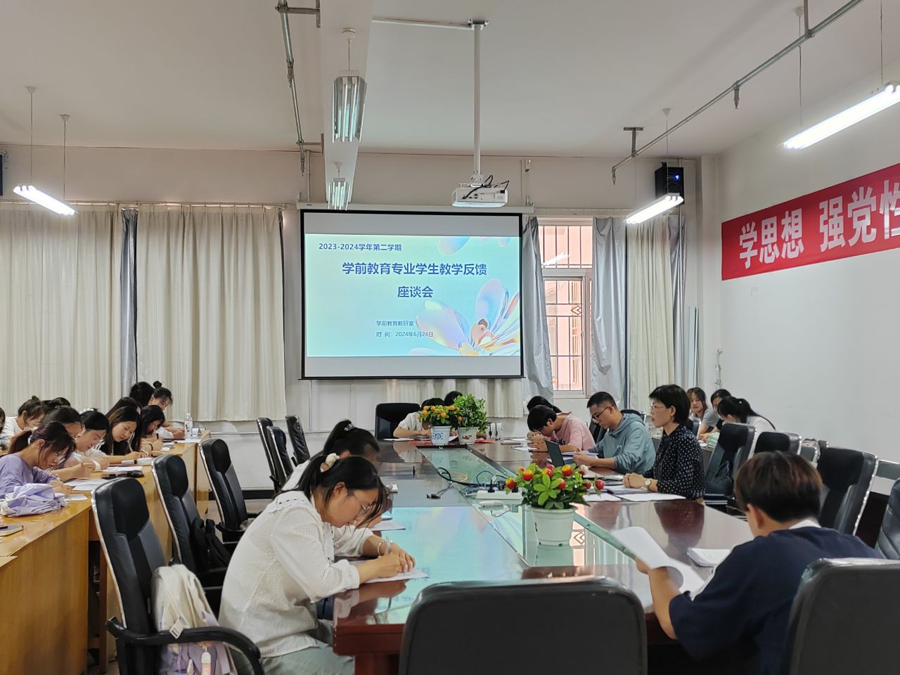 6月24日下午,英国威廉希尔英文官网学前教育教研室举行员工教学工作反馈座谈会,座谈会由学前教育专业负责人主持,学前教育教研室李彦平老师及学前教育2021级、2022级、2023级三个年级9个班级的35名员工代表参加了座谈会。
