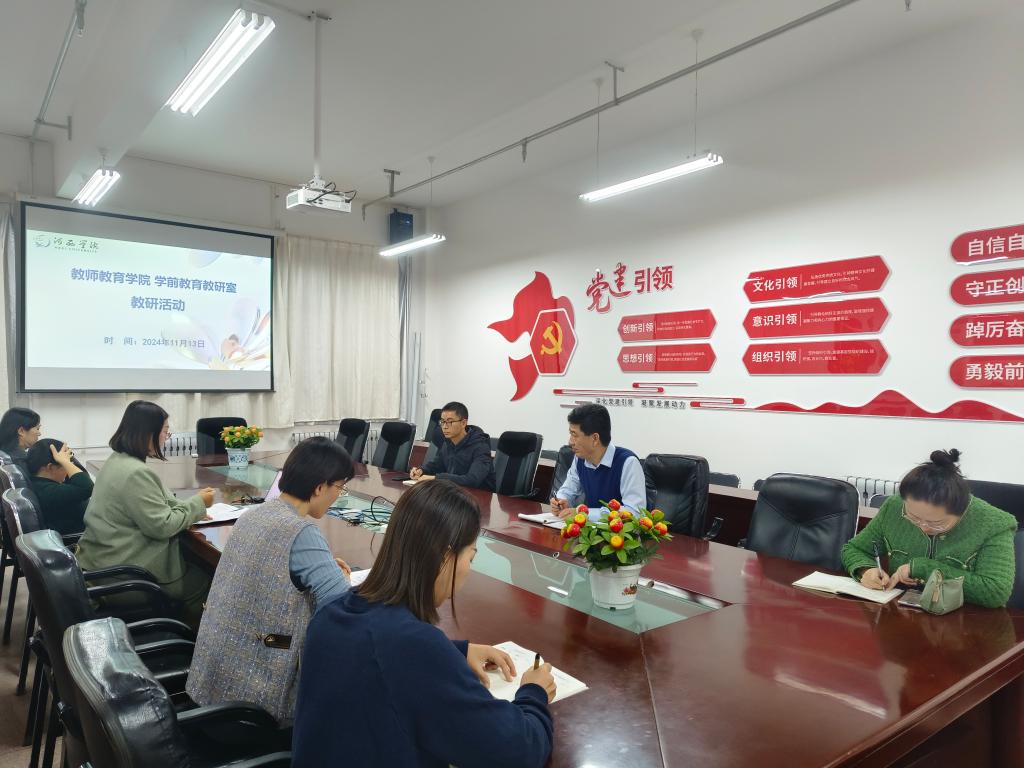 为进一步加强一流课程与思政课程融合建设,学前教育教研室于11月12日组织开展了听评课集体教研活动,学前教育教研室全体教师参加了此次活动。