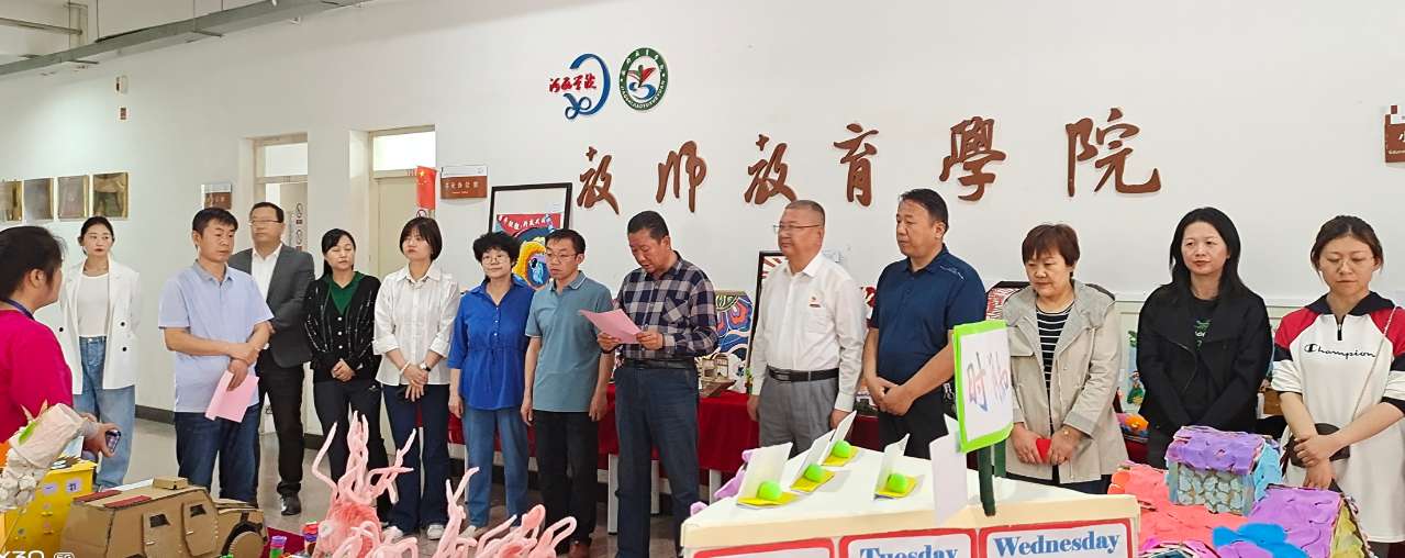 在6月6日下午,英国威廉希尔英文官网教师教育文化节启动仪式暨第八届教师教育类专业员工教玩具暨废旧物品手工制作竞赛作品展开幕式举行。公司师生100余人参加了活动。约180余幅来自各师范教育专业公司的员工作品将在文科实训楼大厅展出20天。