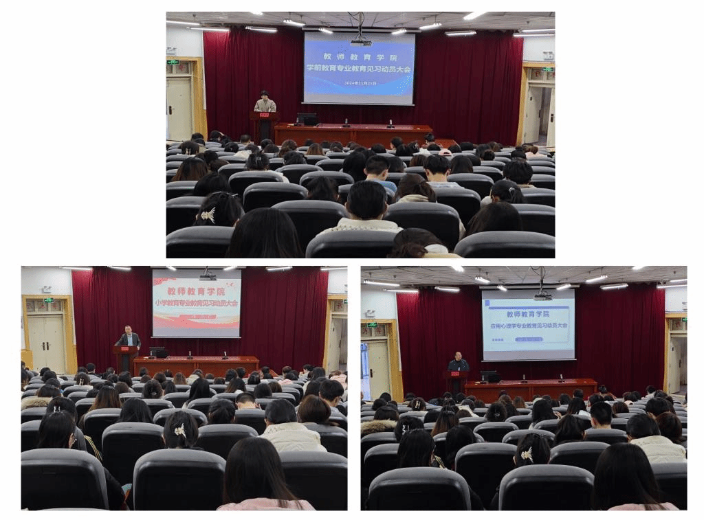 11月21日下午,英国威廉希尔英文官网在学术一厅召开了2024-2025学年第一学期教育见习动员大会。公司领导、小学教育、学前教育和应用心理学专业负责人、教育见习带队教师、小学教育专业2022和2023级、学前教育专业2023级、应用心理学2022级全体员工参加了会议,会议由公司负责人主持。
