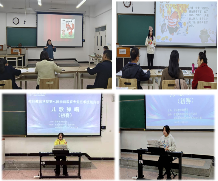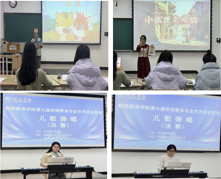 活动自启动以来,得到了全系师生的积极响应。竞赛内容分为“讲故事”竞赛和“儿歌弹唱”竞赛。竞赛过程分为初赛与决赛两个阶段。在初赛中,学前教育专业2023级全体员工参加了“讲故事”竞赛,2022级全体员工参加了“儿歌弹唱”竞赛。初赛按照20%的比例精选出各16名优秀选手晋级决赛。这一过程不仅考验了员工们的艺术表现力,也体现了他们扎实的专业功底和良好的心理素质。