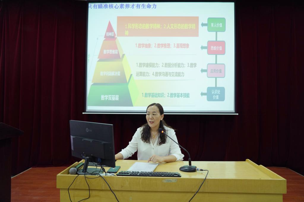 6月12日上午,甘州区北街小学书记、高级教师常晓红作了题为“例谈深度学习与整体单元教学”的教学报告。报告中,她表示,作为一名未来基础教育的人民教师,首先要做到立德树人,找到一个突破口,进行教学课程的改革;其次在落实和细化课程改革的过程中,要建立一个核心素养体系,只有瞄准核心素养才有生命力,才能进行深度学习,员工也会对学习主题全身心的积极参加、体验成功、获得发展;最后以“小数的意义和性质”为例,对怎样进行整体单元教学进行讲解。本次教学讲座让同学们对深度学习有了一个系统性、全面性的认识,对整体单元教学也有了一个深刻理解。