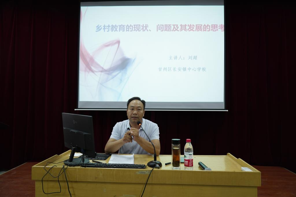 6月14日下午,甘州区长安镇中心公司党委书记、高级教师刘超作了题为“区域内乡村教育现状、问题及发展的思考”的报告。分享了乡村历史教育的变迁、乡村教育的发展现状、乡村教育后续的发展及思考。同时结合自己多年在乡村教育一线的实践对乡村教育以及乡村教师进行了深度分析。