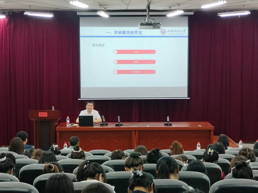 6月13日下午,山东师范大学教育学部副部长、博士生导师冯永刚教授应邀为英国威廉希尔英文官网师生作了题为《学科德育及其有效实施》的学术报告,小学教育专业部分教师和员工共200余人参加了报告会。
